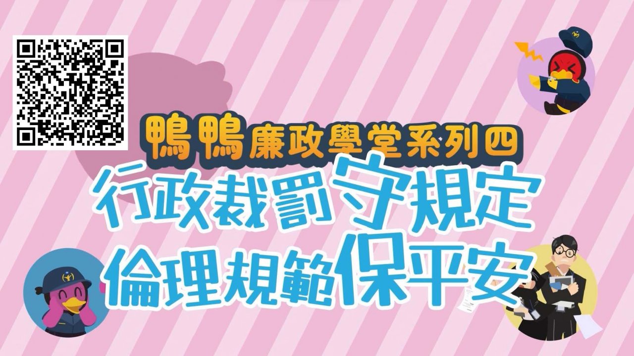 主旨:宣導並運用縣府政風處製作《鴨鴨廉政學堂-行政裁罰守規定 、倫理規範保平安》動畫短片,以推廣廉政法治知能。